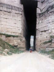 Любопытное место, где добывают т.н. инкерманский камень – материал, из которого в Крыму построены целые города. Камень мягкий, поэтому его просто отпиливают от скал огромными брусками. Внутри скал проложены дороги, наведены мосты через пропасти и т.п. – в общем, декорации боевика. Забравшись внутрь, берегитесь транспорта, ибо водители не ожидают внутри скалы пешеходов… А на авто не советую – с самосвалом не разминуться. Да, в чём бы ни вошли – выйдете в белом.