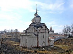 Маленькая, аккуратная, вросшая в землю – но с совершенно чуждой колокольней. Если бы не это - могла бы быть жемчужинкой Ростова (больших жемчужин там хватает, а вот дивной церковки, на мой взгляд, нет). Впрочем, есть точка на валах, откуда колокольня не бросается в глаза. Уникальна тем, что с давних времен не имеет иконостаса – его заменяют фрески, повторяющие традиционные чины. Вообще, стены расписаны очень плотно, и пока всё это сохраняется.