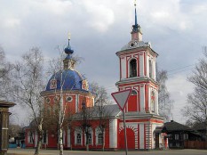 На первый взгляд – вполне типовая, лишь ярко раскрашенная (со временем это проходит), но некоторые детали (окна, завершение колокольни) задерживают внимание.