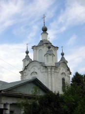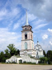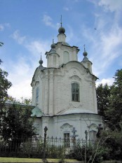 Колокольня снижает оценку, на неё мы смотреть не будем. Остальное – великолепно. Мои подозрения относительно украинских корней проекта подтвердились – строил храм Д. Ухтомский, учившийся у киевского архитектора И. Мичурина. В России церквей такого типа – наперечет, и в основном в Западной Сибири. Столбы ограды венчают виноградные листья, а вовсе не крапивные. Чудно.