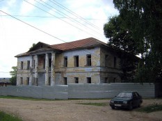 Несмотря на нынешний сельский статус Крапивны, была она когда-то городом, и центр у неё городской, причем застывший где-то во времена Салтыкова-Щедрина. Кривые каменные купеческие дома, лужи даже в жару, мощенные булыжником улицы, булыжник торчит во все стороны… Заповедник там нужно делать, однозначно. Не сообразив, сфотал не то – обычную классицистическую городскую усадьбу…