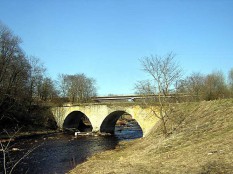 В каньоне реки Лавы, чуть выше по течению автомобильного моста. Очень романтично выглядит, хотя и потерял народно-хозяйственное значение. Спасибо, что не взорвали...