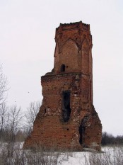 От усадьбы здесь остался лишь фрагмент стены (очень напоминает аналогичную фигуру в усадьбе Дибича в Старом Гарколово на Балтике, Ленинградская обл., см.), но по нему, конечно, можно (и нужно) судить… И руки обрывать. Правда, строил это уже не Баженов, но уложено точно в стиль.