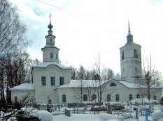 Приходская церковь на месте Устьнедумской пустыни, образец типичной вятской культовой архитектуры на въезде в область – для первичного ознакомления. Характерны длинная трапезная (что не здорово) и прихотливые каменные украшения (что замечательно).
