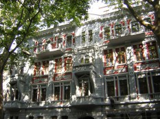 Город молодой, почти все достопримечательности – периода расцвета дикого капитализма, а мне этот период архитектурно симпатичен. Есть и замученные дома (один, на Садовой, особенно жалко), но в основном – в пристойном виде, есть знаменитые дворики с отдельными лестницами в каждую квартиру… В общем, колоритно. А вот Дерибасовской не проникся – сплошные уличные забегаловки, закрывающие фасады, не украсили. Заставила приостановиться и одна совсем новостройка – Арабский культурный центр с надписью по-русски, но якобы вязью под крышей: `БОГ ЕДИН`. Как там продолжение? `И Магомет пророк его`?