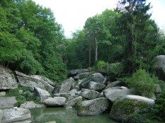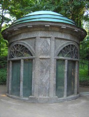 Дар графа Потоцкого своей супруге. София была влюблена в Крым, граф весьма впечатлился пригородами Петербурга (у меня есть подозрение, что в выборгском Монрепо он тоже бывал). Парк получился очень своеобразный – в нем вспоминаешь то Карелию, то Алупку. Павильон Флоры, сквозь который виднеется фонтан, даже несколько банален для этого места. Но потом зрелище слегка разгоняется, и всякие забавные штучки следуют одна за другой: Большой водопад, Долина гигантов – привет Карелии, Грот Калипсо, Грот Фетиды – привет Крыму… Остров Анти-Цирцеи с павильоном вообще снят с Монрепо один в один. Специальное предложение от графа – прогулка на лодке по подземной реке Ахеронт, впадающей в одноименное озеро. Будучи сильно нездоровым (увы, отдыхать – не работать, силы истощились), я счел это предложение за шутку дурного тона и не воспользовался. Но многие с удовольствием катаются по Аиду, не задумываясь о последствиях… В целом – парк, конечно, выдающийся, но, на мой вкус, его достаточно посетить единожды, так как всё вкусное – это тщательно подобранные и размещенные на каждом шагу элементы дизайна. Ни покоя, ни отдохновения (как в не менее людных Никитском саду или Павловском парке) там не образовалось.