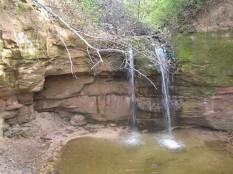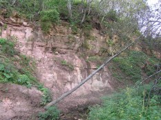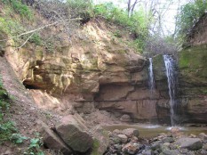 На безымянном ручье, близ впадения его в Волхов. По словам очевидцев, в последние годы преодолел некий барьер и начал отползать от Волхова довольно быстро. Очень неожиданный песчаный каньон, таинственное место. Надо бы съездить в половодье.