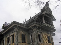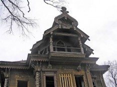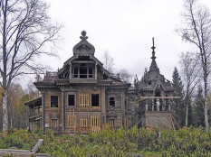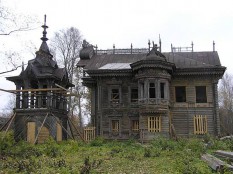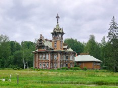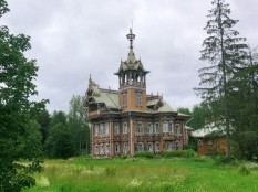 Один из двух сохранившихся «лесных теремов», построен по проекту И.Ропета (очень близок к проекту павильона на Парижской выставке). Вещь уникальная, тем более, что ропетовской деревяни почти не сохранилось. Этот дом был уже готов пополнить собою список утраченных шедевров (деревня брошена, путных дорог нет…), но, к счастью, нашлись энтузиасты, которые подставили ему плечо. В настоящий момент работы разворачиваются, для полноты впечатлений надо, наверное, приехать через пару-тройку лет.