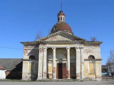Типовой сельский классицизм, портик, колоннада - всё почти настоящее. Внутри - осколки какого-то производства.