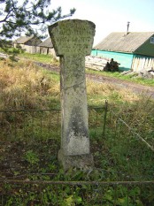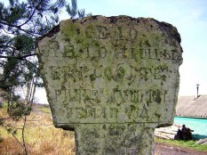 Вроде, единственный в стране, сохранившийся с крепостных времен. Надпись, выбитая на камне, гласит: "Село Яблоницы крп. собств. ривиз. душ 101 земли 164 д.".