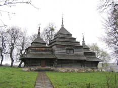 Замечательное строение, напоминающее бойковские церкви, ассоциации с корабликом возникают мгновенно. Рядом с церковью, наряду с могильными крестами 19-20 вв. вкопаны несколько древних каменных крестов причудливой формы и выделки.