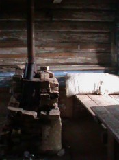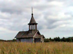 От деревни – ни следа, часовня в чистом поле, в традиционном здешнем стиле. Внутри – охотничья изба с печью и запасом соли-спичек. Романтика.