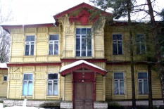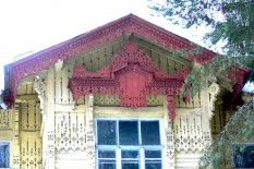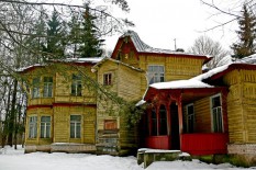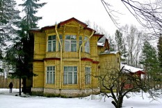Деревянный дом очень странной формы (неорусский стиль, форма хорошо видна на спутниковых фото). Украшен крылечками, верандой, весь в резьбе. Формально на территории санатория, но пока проход свободный.