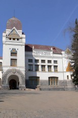 Бывший Земельный банк, модерн, архитектор Гоген - всё по-столичному. Здание замечательное, музей неплохой - в основном благодаря местным звездам Горюшкину-Сорокопудову и Макарову, представленным множеством прекрасных работ. А начинается музей со скульптур на улице, тоже по-своему замечательных.
