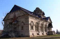 Авторство приписывается Померанцеву и Н.Л.Бенуа. Хватило бы и одного, но двое - тоже неплохо. Благодаря ещё и схожей обрубленности, напоминает собор в Гусе-Хрустальном, так что Бенуа здесь пристегнут явно не зря. Вся эта красота появилась благодаря Ю.С.Нечаеву-Мальцову - владельцу как заводов в Гусе, так и здешней усадьбы, бывшему в дружеских отношениях со всеми творческими людьми своего времени. Увы, всё его хозяйство досталось людям, гораздо меньше смыслящим в искусстве, чем в идеологии…