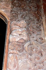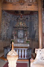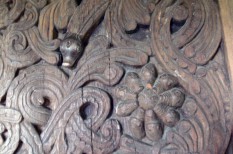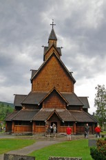 Самая большая из сохранившихся ставкирок, самая близкая к Осло. Соответственно, народищу - уйма, но все как-то помещаются. Объем обалденный, сразу становится ясно, что корабли и церкви строили одни и те же люди. Алтарь, купель, епископское кресло (скромняги были эти средневековые епископы) весьма любопытны, но главный изюм в деревянной резьбе. Порталы с явно нехристианскими существами можно разглядывать и разгадывать… Дракон - не такой выразительный, как в Боргунне, но по соседству с крестом выглядит забавно.