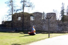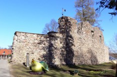 Оторвать бы руки и остальное местному горе-церетели, украсившему центр города здоровенными птичками и зайчиками диких оттенков. От замка осталось немного, но выглядит это симпатично, особенно вкупе с рельефом местности и несколькими старыми зданиями по соседству. Если бы не птички да зайчики…