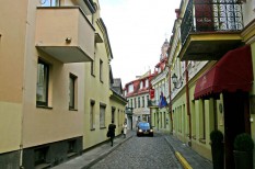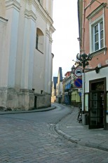 Насколько здесь великолепны костелы, настолько усреднен облик обычных зданий. Удалось найти лишь один по-настоящему старый домик (ул. Пилес, 12), остальные, объявленные таковыми, выглядят век на 19-й, о прочих и говорить не приходится. Улочки действительно узкие (любопытно, что почти все – проезжие), но самое симпатичное на них – мощенка, а фасады довольно ординарные. Оговорюсь: побывал, конечно, не везде.