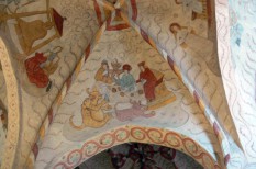 Очень мощная, по толщине и солидности стен не уступает крепостям, а по пропорциям – скорее, пороховому складу. Несмотря на отсутствие изящества, выглядит дивно. Внутрь попадать обязательно – фрески просто роскошные и по сюжетам, и по исполнению, недаром в кирхе проводят занятия живописью. Как обычно, самые симпатичные – черти, сопровождающие прочих персонажей и на работу, и на отдых.