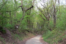 Старинная мощенка, у станции Знаменка прорезает холм и делает несколько поворотов (местные называют это место туннелем). Очень эффектное место, заслуживает отдельной строки. И деревья здесь растут замечательные и странноватые с виду.