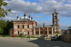 Традиционного рязанского вида, пятиглавая, колокольня низковата – и стоит под горой, на мой взгляд - явный промах архитектора, было бы здорово загнать её повыше, да хоть сбоку поставить…