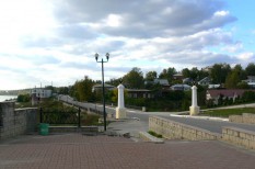 Бывая в городах, стоящих на больших реках, всегда удивляюсь, насколько мало архитектурно использованы плюсы такого положения. В лучшем случае, по берегам (даже в центре) остатки деревень, в худшем – помойки. Здесь всё не так. В Касимове есть настоящая длинная набережная со спусками к воде и променадом. Браво! При подъезде к центру города – т.н. Петровская застава (Водяные ворота) – пара ампирных колонн очень новодельного вида, но считаются историческими.