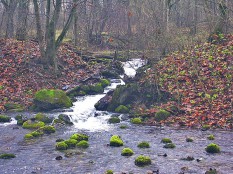 Действительно, дубрава, множество родников, из большой карстовой воронки, буквально пузырящейся, вытекает речка, мгновенно набирающая силу и почти тут же преодолевающая два невысоких порога. Очень симпатичное место, раньше относилось к практически несохранившейся усадьбе Велькота.