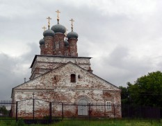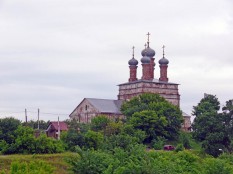 Стоит на холме, огромен, когда-то был снабжен высокой колокольней – сейчас колокольни нет, и громоздкость оставшегося бросается в глаза.