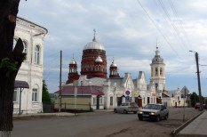Не ожидал, что в такой восторг меня сможет привести постройка в избитом русско-византийском стиле – самый, на мой вкус, мертворожденный и казенный жанр. Но недаром этот собор считается одним из чудес Вятской земли – архитектор В.М. Дружинин нашел максимально приемлемые пропорции, устроил фасады под модерн, а угловые башни с ротондами – просто великолепны.