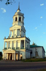 Сама церковь 17 в., ещё почти без кирпичных узоров, обстроена примитивными приделами, её почти не видно. Зато многоярусная ампирная колокольня с колоннами и вазами видна отовсюду. Нелепо и обидно – по отдельности были бы любопытные постройки.
