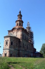 Тотемское барокко на Вятке, один из лучших образцов жанра. Построен устюжанами – мастерами из народа Горынцевыми, чуть не загублен впоследствии образованными архитекторами Росляковым и Чарушиным, пристроившими к идеальному объему лишние объемы – видимо, для понтов. Пребывает в состоянии полуремонта и, возможно, будет им добита…