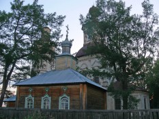 Славная тотемская архитектура, но менее изощренная, чем в Тотьме или Великом Устюге – то ли так торопились 30 лет, то ли мастера были послабее. Близ собора – две деревянные часовни, привезенные из окрестных деревень, не слишком выдающиеся.
