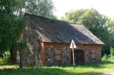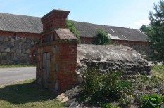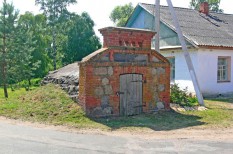 Замечательный амбарный ансамбль центральной площади села. Украшением служит погреб в том же каменно-кирпичном стиле, характерном для здешних и псковских мест.
