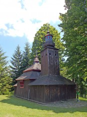 В отличие от украинского Закарпатья, здесь редко красят детали церквей в попугайские цвета. Может, так оно и было исторически, но мне кажется излишним. Зато замечательно расположена в роще на пригорке.