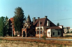 Вокзал не тот, на который приходят электрички с Витебского вокзала, а специальный царский, на который приходили поезда из Императорского павильона. Очень изощренный псевдорусский стиль, дивная резьба по камню, цело всё, кроме внутренностей. Хоть бы ресторан открыли, что ли...