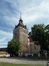 Про церковь не скажу ни хорошего, ни плохого – так, средненько и неоригинально, Трансильвания приучает к более эффектным постройкам. А вот в часовую башню мастера вложились – она-то и есть жемчужина Саскиза, стремившегося, как говорят, догнать и перегнать Сигишоару. Почти удалось.