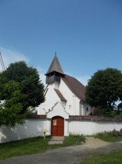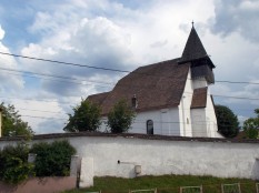 Само здание построено по всем правилам оборонных церквей, но не имеет ни высокой опоясывающей стены, ни башен. Замечателен деревянный скворечник над входом – боюсь, его придумали уже в наше время.