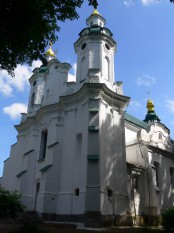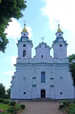 Бывший костел базилиан, перепрофилирован в православие в 19 в.. Не удалось отыскать сведения о появлении на фасаде воинской атрибутики – символика не слишком похожа на униатскую. В целом очень солидно, в основном, благодаря декоративным, но огромным контрфорсам по фасаду. Башни тоже хороши.