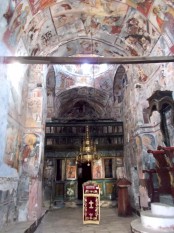 Расположен на склоне неслабой горы, недавно туда проложили дорогу, но слишком поздно: несколько лет назад в монастыре случился пожар, тушить его было практически нечем и некому, выгорело всё, кроме наружной стены и – чудо! – церкви с фресками 14-го века. На развалинах остальных построек происходит вялый разбор завалов, везде кучи мусора… Но монастырь всё же прекрасен. Фрески чудесные, церковь очаровательная, пейзажи изумительные. Какие есть ещё восторженные прилагательные? И, это… Будьте осторожны с огнем!
