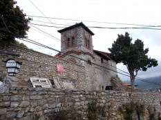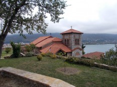 Единственная в Охриде и окрестностях церковь оборонного типа. Уселась, как положено, на скале, угрюмо и неприступно.