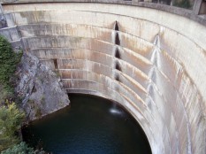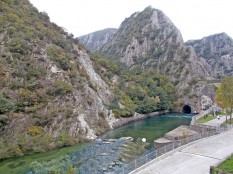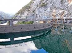Очень живописна, как все горные ГЭС. Расположена в каньоне Матка (см.), а каньон предполагает узость – да, плотина узкая и высокая, впечатляет. Река Треска вытекает из водохранилища через технологический туннель в горе. Жаль, не видел момент водосброса.