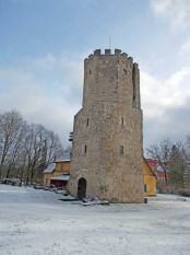 Это не иногда встречающийся в Эстонии замок-башня, а проездная башня, оставшаяся от епископского замка, занимавшего весь немаленький холм. Нынче выглядит как парковая постройка в усадьбе Поркуни (см.).