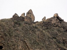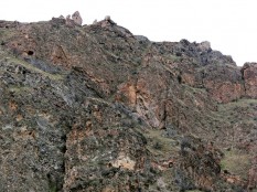Каюсь, не залезал – на такую прогулку нужен день, которого не было. Но с расстояния масштабы этого сооружения, с виду абсолютно неприступного, впечатляют: на фото видны двое ворот внизу, под почти отвесной скалой и стены наверху. Нынешнее племя с трудом одолевает этот подъемчик, а древние бегали запросто.