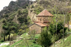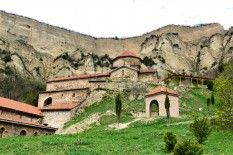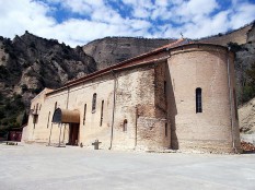 Расположен вне населёнки, в ущелье. Старейший храм Иоанна Предтечи – первый в Грузии купольно-крестовый храм (560 г.), до этого строили только базилики. В нем был похоронен преп. Шио Мгвимский – к месту хранения его мощей можно пройти неосвещенными переходами, берегите голову и ноги! Более крупный храм Успения – 12 в., перестроенный снаружи и слегка замученный внутри. На окрестных склонах есть ещё маленькая церковь и часовня – всё средневековое.