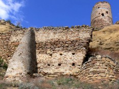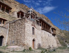 Здесь одна полупещерная церковь, фресок мало, одна башня с красивым изразцовым пояском и ворота. Устав строгий, разговаривать нельзя, а заехать стоит.