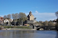 На мой вкус, самая впечатляющая церковь города. Древние стены, мозаичные иконы, замечательное крыльцо плюс местоположение – на скале над Курой.