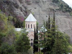 Когда-то здесь был один из скитов миссионера Давида Гареджийского, основавшего несколько очень почитаемых в Грузии обителей. Храм нестарый, стилизован под традиционные. Наряду с могилой Грибоедова – повод прокатиться на фуникулере.