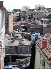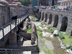 Расположен в мусульманском квартале, вдоль набережной узенькой речки рядом с мечетью (невыразительной), отчего возникает отчетливый восточный привкус. Тбилиси – город контрастов, и их любопытно наблюдать.