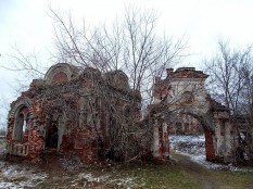 Скелет типовой церкви, какой сейчас уже нечасто встретишь. Утешение – в виде сложных ворот с часовенкой (тоже, впрочем, скелеты).