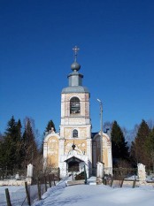 Вместо двух деревянных церквей 18 в. в конце 19 в. построили одну типовую кирпичную. Наверное, для прихода это престижнее, но неинтересно.
